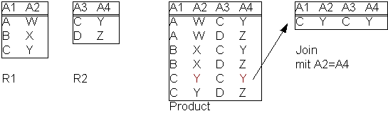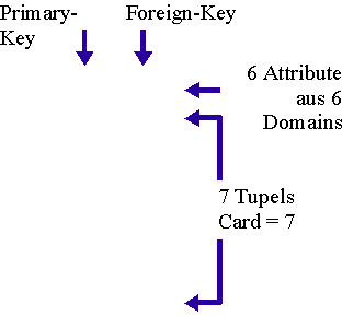 Alle Daten einer Datenbank werden in sogenannten Relationen gespeichert. Als Relation (Tabelle) bezeichnet man eine logisch zusammenhängende Einheit von Informationen. Sie besteht aus einer festen Anzahl von Attributen (Spalten) und einer variablen Anzahl Tupel (Zeilen). Die Anzahl der Attribute einer Relation wird als Degree (Ausdehnungsgrad) bezeichnet. Eine Relation mit nur einem Attribut wird unär, eine mit zwei Attributen binär genannt. Die Relation Land hat den Degree 6. Eine Relation mit n Attributen wird n-ary genannt.Mit Kardinalität bezeichnet man die Anzahl der Tupel in einer Relation. Diese ist zeitabhängig und kann auch gleich Null sein, wenn die Relation leer ist. Eine Relation hat zusätzlich folgende Eigenschaften:Betrachten wir noch einmal die Tabellen 1, 2 und 3 von Seite . Wir können die Namen aller Länder, die nicht nur auf einem Kontinent liegen, heraussuchen, indem wir die Tabelle Land mit der Tabelle Umfasst verbinden. Dazu nutzen wir den Primärschlüssel L_ID aus Land und den Fremdschlüssel L_ID aus Umfasst. Der SQL-Befehl2 für die Abfrage der beiden Tabellen lautet: